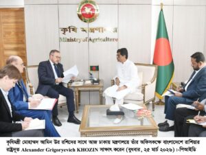 আজ কৃষি, খাদ্য, মৎস্য ও প্রাণিসম্পদ মন্ত্রী মোহাম্মদ আমিন উর রশিদের সাথে সচিবালয়স্থ কৃষি মন্ত্রণালয়ের সম্মেলন কক্ষে ঢাকায় নিযুক্ত রাশিয়ার রাষ্ট্রদূত আলেক্সান্ডার গ্রিগরিয়েভিচ খোজিন( Alexander Grigoryevich KHOZIN) সৌজন্য সাক্ষাৎ করেন।