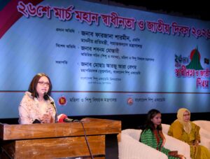 তিনি আজ ঢাকায় বাংলাদেশ শিশু একাডেমি মিলনায়তনে ২৬ মার্চ মহান স্বাধীনতা ও জাতীয় দিবস ২০২৬ উদযাপন উপলক্ষ্যে আলোচনা, পুরস্কার প্রদান ও সাংস্কৃতিক অনুষ্ঠানে প্রধান অতিথির বক্তৃতায় এ কথা বলেন। অনুষ্ঠানে বাংলাদেশ শিশু একাডেমির দায়িত্বে মহিলা ও শিশু বিষয়ক মন্ত্রণালয়ের যুগ্মসচিব মোছাঃ আরজু আরা বেগমের সভাপতিত্বে অনুষ্ঠানে অন্যান্যের মধ্যে বিশেষ অতিথির বক্তৃতা করেন মহিলা ও শিশু বিষয়ক মন্ত্রণালয়ের অতিরিক্ত সচিব (শিশু ও সমন্বয়) শবনম মোস্তারী এবং দুইজন শিশু শিল্পী জাইমা তাসরিন ও রায়হান মাহমুদ।