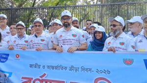 জাতীয় ও আন্তর্জাতিক ক্রীড়া দিবস-২০২৬ উপলক্ষে যুব ও ক্রীড়া মন্ত্রণালয়ের উদ্যোগে আয়োজিত এক বর্ণাঢ্য র্যালীতে অংশ নেন যুব ও ক্রীড়া প্রতিমন্ত্রী মো: আমিনুল হক।