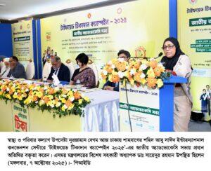উপদেষ্টা আজ ঢাকায় শাহবাগে শহিদ আবু সাঈদ কনভেনশন সেন্টারে ‘টাইফয়েড টিকাদান ক্যাম্পেইন ২০২৫’-এর জাতীয় অ্যাডভোকেসি সভায় প্রধান অতিথির বক্তৃতায় এসব কথা বলেন।