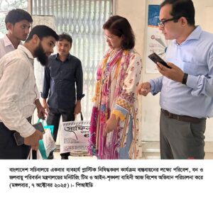 পরিবেশ, বন ও জলবায়ু পরিবর্তন মন্ত্রণালয়ের তিনটি মনিটরিং টিম ও আইনশৃঙ্খলা বাহিনী আজ সচিবালয়ের ২ ও ৫ নং গেটে একবার ব্যবহার্য প্লাস্টিক (সিঙ্গেল ইউজ প্লাস্টিক বা এসইউপি) নিষিদ্ধকরণ কার্যক্রম বাস্তবায়নে আগতদের কাপড়ের ব্যাগ প্রদান ও বিশেষ অভিযান পরিচালনা করেছে।