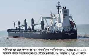 মার্কিন যুক্তরাষ্ট্র ও বাংলাদেশের মধ্যে স্বাক্ষরিত সমঝোতা স্মারকের (MOU) আলোকে প্রথমবারের মতো যুক্তরাষ্ট্র থেকে গম আমদানি কার্যক্রম শুরু হয়েছে। এ চুক্তির আওতায় মোট ৪ লাখ ৪০ হাজার মেট্রিক টন গম আমদানি করা হবে, যার প্রথম চালান হিসেবে ৫৬ হাজার ৯৫৯ মেট্রিক টন গম নিয়ে আজ mv NORSE STRIDE জাহাজটি চট্টগ্রাম বন্দরের বহিঃনোঙরে পৌঁছেছে।