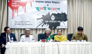 তিনি আজ ঢাকায় বিশ্ব সাহিত্য কেন্দ্র মিলনায়তনে মুক্ত গণমাধ্যম মঞ্চ আয়োজিত ‘গণমাধ্যমের জুলাই আত্মদান’ স্মারকের মোড়ক উন্মোচন ও জুলাই সংলাপ অনুষ্ঠানে প্রধান অতিথির বক্তবে এ কথা বলেন।
