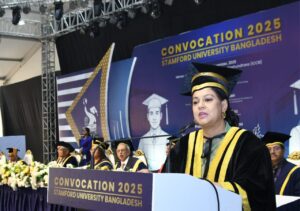 শনিবার রাজধানীর বসুন্ধরা আন্তর্জাতিক কনভেনশন সেন্টারের এক্সপো ভিলেজে স্টামফোর্ড ইউনিভার্সিটি বাংলাদেশ আয়োজিত সমাবর্তন ২০২৫-এ সমাবর্তন বক্তার বক্তব্যে পরিবেশ উপদেষ্টা এসব কথা বলেন।