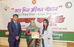 মহান বিজয় দিবস ২০২৫ উপলক্ষ্যে চলচ্চিত্র ও প্রকাশনা অধিদপ্তরে (ডিএফপি) রক্তদান কর্মসূচি অনুষ্ঠিত হয়েছে। সোমবার (৮ ডিসেম্বর) সকাল ১০টায় চলচ্চিত্র ও প্রকাশনা অধিদপ্তরের সভাকক্ষে রক্তদান কর্মসূচির উদ্বোধন করেন অধিদপ্তরের মহাপরিচালক খালেদা বেগম। এ সময় গণযোগাযোগ অধিদপ্তরের মহাপরিচালক মো. আবদুল জলিল এবং বাংলাদেশ চলচ্চিত্র সার্টিফিকেশন বোর্ডের ভাইস চেয়ারম্যান এস এম আব্দুর রহমান উপস্থিত ছিলেন। দিনব্যাপী এই রক্তদান কর্মসূচিতে চলচ্চিত্র ও প্রকাশনা অধিদপ্তর, গণযোগাযোগ অধিদপ্তর এবং বাংলাদেশ চলচ্চিত্র সার্টিফিকেশন বোর্ডের কর্মকর্তা-কর্মচারী ও তাঁদের পরিবারের সদস্য-সহ মোট ৫০ জন রক্ত দেন। রক্তদান কর্মসূচিতে সার্বিক সহযোগিতা করে বাংলাদেশ রেড ক্রিসেন্ট সোসাইটি।