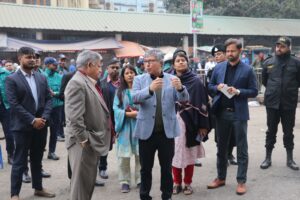 পরিদর্শনকালে ডেইলি স্টার এর উপদেষ্টা সম্পাদক কামাল আহমেদ, প্রথম আলো পত্রিকার নির্বাহী সম্পাদক সাজ্জাদ শরিফসহ দায়িত্বশীল কর্মকর্তা ও সিনিয়র সাংবাদিকগণ উপস্থিত ছিলেন।