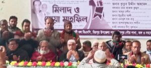 আজ মঙ্গলবার সকালে মিরপুর মহিলা কলেজ হলরুমে মিলাদ ও দোয়া মাহফিল অনুষ্ঠিত হয়। অনুষ্ঠানে প্রধান অতিথি’র বক্তব্য রাখেন, কুষ্টিয়া-২ (মিরপুর-ভেড়ামারা) আসনের সাবেক সংসদ সদস্য, জেলা বিএনপি’র সাবেক সভাপতি ও বিএনপি নির্বাহী কমিটির অন্যতম সদস্য বীর মুক্তিযোদ্ধা আলহাজ্ব অধ্যাপক শহীদুল ইসলাম। প্রধান বক্তা ছিলেন, কুষ্টিয়া-২ আসনে বিএনপি মনোনীত ধানের শীষের প্রার্থী বিএনপি নির্বাহী কমিটির অন্যতম সদস্য ব্যারিষ্টার রাগিব রউফ চৌধুরী। বিশেষ অতিথি ছিলেন, জেলা বিএনপি’র আহবায়ক কুতুব উদ্দিন আহমেদ, উপজেলা বিএনপি’র সিনিয়র সহ সভাপতি খন্দকার ওমর ফারুক কুদ্দুস, সাবেক সাধারণ সম্পাদক রহমত আলী রব্বান, পৌর বিএনপি’র সভাপতি আব্দুর রশিদ, উপজেলা বিএনপি’র সাংগঠনিক সম্পাদক এনামুল হক বাবু, উপজেলা যুবদলের সাবেক সভাপতি আজাদুর রহমান আজাদ প্রমুখ । অনুষ্ঠানে সভাপতিত্ব করেন, মিরপুর উপজেলা বিএনপি’র সভাপতি আশরাফুজ্জামান শাহীন ও পরিচালনা করেন, উপজেলা বিএনপি’র সাধারণ সম্পাদক খন্দকার টিপু সুলতান। এসময় উপজেলা বিএনপি, পৌর বিএনপি ও ইউনিয়ন বিএনপিসহ সহযোগী সংগঠনের বিভিন্ন নেতৃবৃন্দ উপস্থিত ছিলেন।